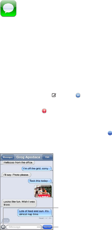 Wi-Fi to other iOS 5 users. Messages can include photos, videos, and other info. You can see when