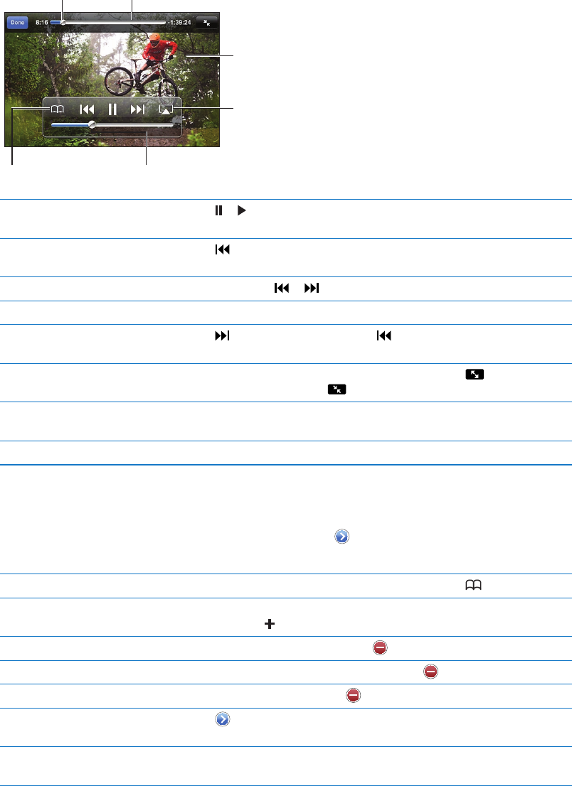 Pause or resume playback Tap or . You can also press the center button on the iPod touch