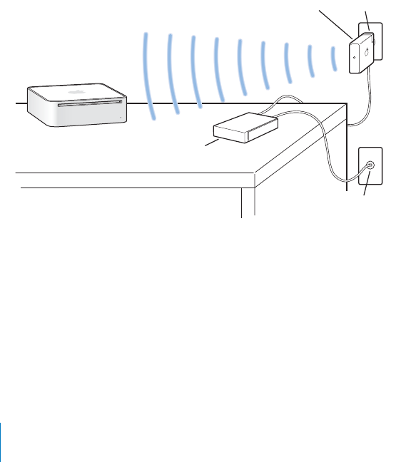 With AirPort Extreme technology, your Mac mini makes a wireless connection to an