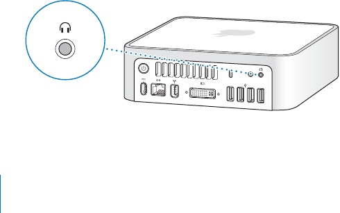 Your Mac mini comes with an headphone out/optical digital audio out (f) port and an