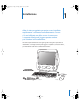 T298586J.book Page 8 Friday, April 1, 2005 5:33 PM 4 Accendere il computer tenendo premuto il pulsante di alimentazione (®) sulla parte laterale del computer. ® Pulsante di alimentazione Regolazione del monitor Per regolare le impostazioni del monitor, scegliere Apple () > Preferenze di Sistema (fare clic sul menu Apple e scegliere Preferenze di Sistema) e fare clic su Monitor. Per aumentare il contrasto del monitor, premere il tasto “F15” sulla tastiera. Per diminuire il contrasto, premere “F14”.