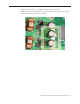 Replacing the Down Converter 1. Important: Be careful when installing the down converter; the board is fragile. Hold the down converter by the top of the board (as shown below). Carefully slide the down converter onto the logic board in the direction of the arrow. 2. With the down converter in place, squeeze the pins (circled below) and the connector together for a solid connection. 62 - eMac ATI Graphics/ USB 2.