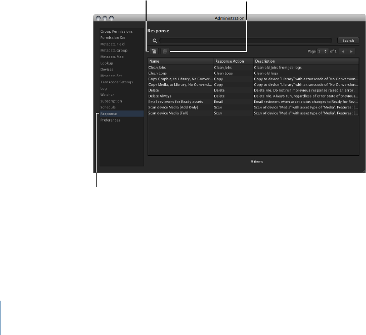 The Response pane contains the settings for creating a wide variety of preconfigured