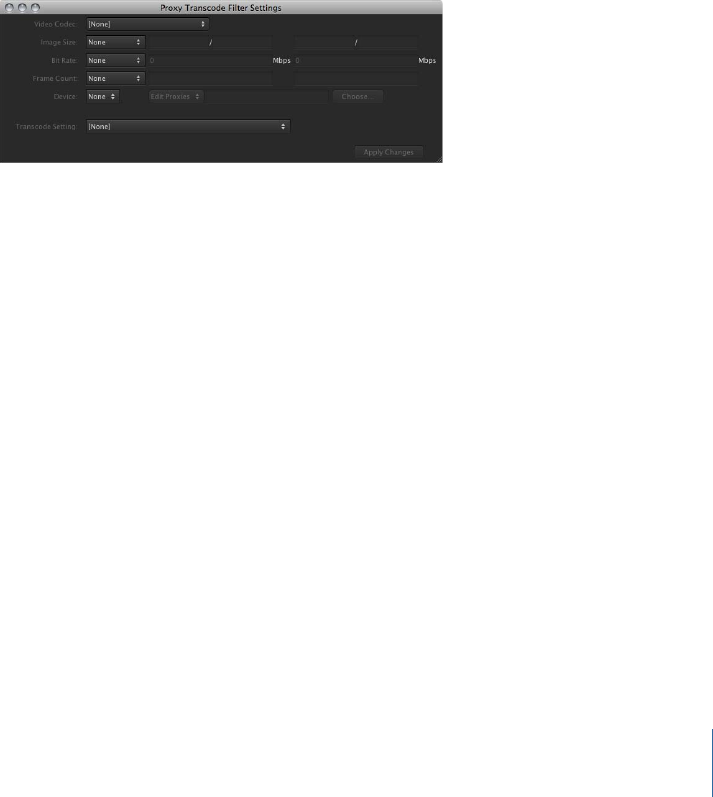 The Proxy Transcode Filter Settings window appears.