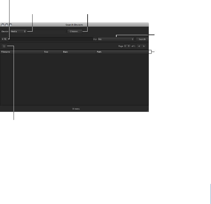 1 Choose the device to search from the Device pop-up menu.