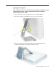 . Locate the three silver case screws circled below. You may have to lift the stand to locate the middle case screw. Note: These screws are captive; they are part of the display/bezel assembly and cannot be removed. Using the tool provided, or a Phillips #2 screwdriver, loosen the three captive screws. Turn the screws to the left until they stop turning. Don’t force the screws once they stop turning. 5. Holding the back cover by the metal stand, tilt the cover up and lift it off the computer.