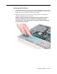 Closing the Computer 1. Replace the cover so that the slots on the top edge of the back cover mate with the tabs on the display housing. 2. Lower and press the cover into place until it fits snugly on the computer.