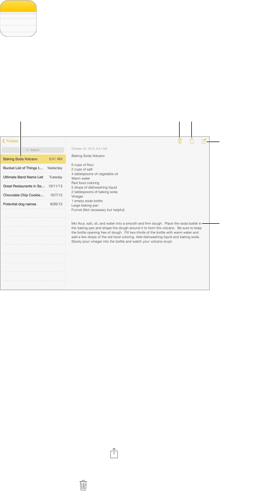 Delete a note. Tap , or swipe left over the note in the notes list.
