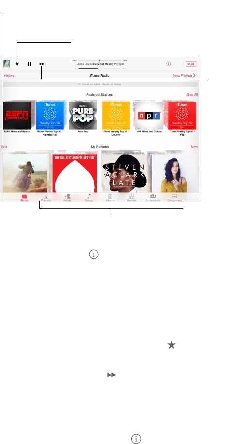 Note: iTunes Radio may not be available in all areas. For more information about iTunes Radio,