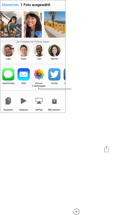 Fotos oder Videos ausgewählt haben, auf und danach auf „iCloud-Fotofreigabe“, fügen Sie