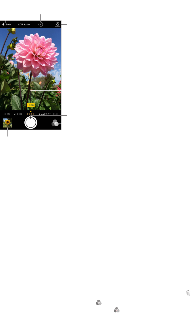 Aufnehmen eines Fotos: Wählen Sie „Foto“ und tippen Sie auf den Auslöser oder auf eine der