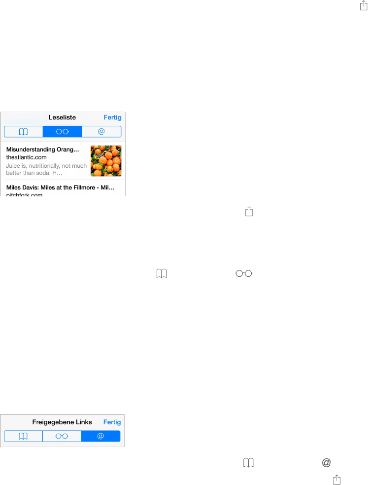 Anzeigen der Leseliste: Tippen Sie auf und danach auf .