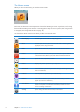 The Home screen When you turn on iPod nano, you see the Home screen. Each icon on the Home screen represents choices for listening to music or podcasts, or for using features like recording voice memos or viewing photos. Tap an icon to open it, then use gestures to navigate (see “Using Multi-Touch” on page 10). You’ll see these Home screen icons when you first turn on iPod nano: Icon 6 Function Now Playing Provides quick access to the currently playing audio.