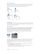 Siri Met Siri kunt u handelingen uitvoeren zoals apps openen door erom te vragen. VoiceOver kan de antwoorden van Siri voor u uitspreken. Zie Hoofdstuk 4, Siri, op pagina 39. Zoomen In veel apps kunt u op specifieke onderdelen in- en uitzoomen. U kunt bijvoorbeeld tweemaal tikken of twee vingers uit elkaar bewegen om de kolommen op een webpagina in Safari groter te maken. Er is ook een speciale zoomfunctie voor mensen met een beperking. Hiermee kunt u het volledige scherm van elke app vergroten.
