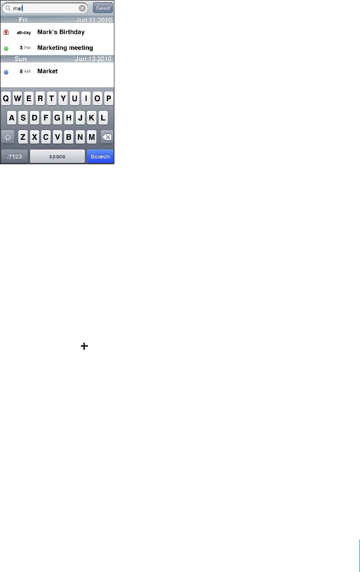 Calendar events are included in searches from the Home screen. See “Searching” on