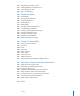 software update and restore 214 turning iPod touch on or off 11 TV shows rented 51, 67, 68 TV shows, syncing 49 TV signal settings 172 TV, viewing content on 68, 81 typing facemarks 35 international keyboards 34 keyboard 31 spell checking 32 in webpage text fields 106 word substitution 37 U undoing edits 33 unlocking iPod touch 11 unpairing Bluetooth device 43 unread messages, marking 96 updating iPod touch software 214 USB cable 10, 18 port 18 user dictionary 37 V video calls restri