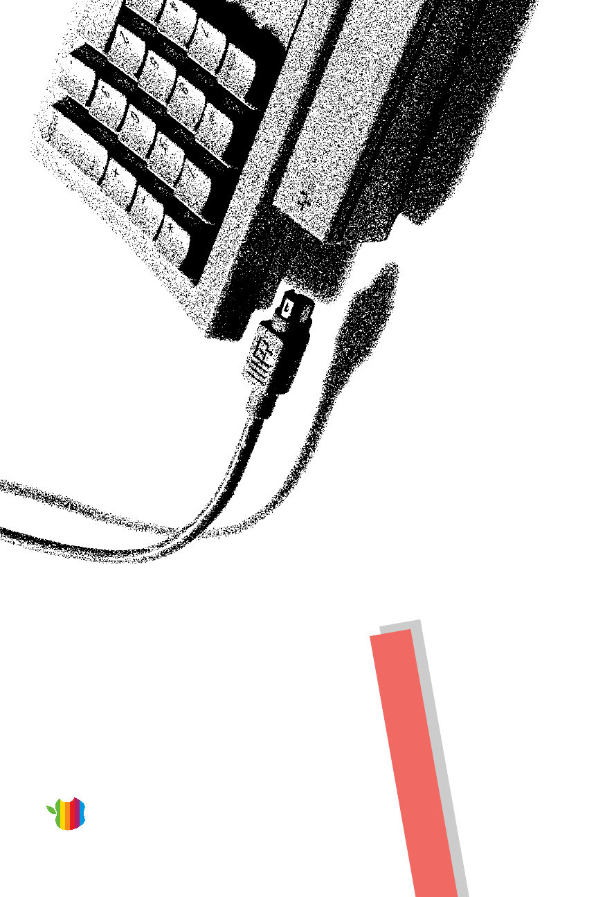Leave the switch on so you can use the Power key on the keyboard to turn your computer on and to shut it down without having to turn it completely off. 16. Press the main power switch on the back of the computer. 15. Plug in your keyboard cable. s Warning: If you use a RAM disk, be sure to save your work onto another disk before turning off your computer so that you won’t lose your data. s 4. Drag the slider to indicate how much memory you want to use for a RAM disk.