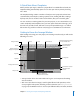 3 3 Creating Your Arrangement The large gray space to the right of the track list is the Arrange area. This is where recorded or imported audio or MIDI regions (such as the Apple Loops you’ve added, and your recordings) are arranged into a song structure. You can freely drag and drop your regions from position to position, loop, copy, cut, and resize them. Arrange area Bar ruler Just above the Bar ruler—to the top right of the Arrange area—you’ll see the Drag and Snap menus.