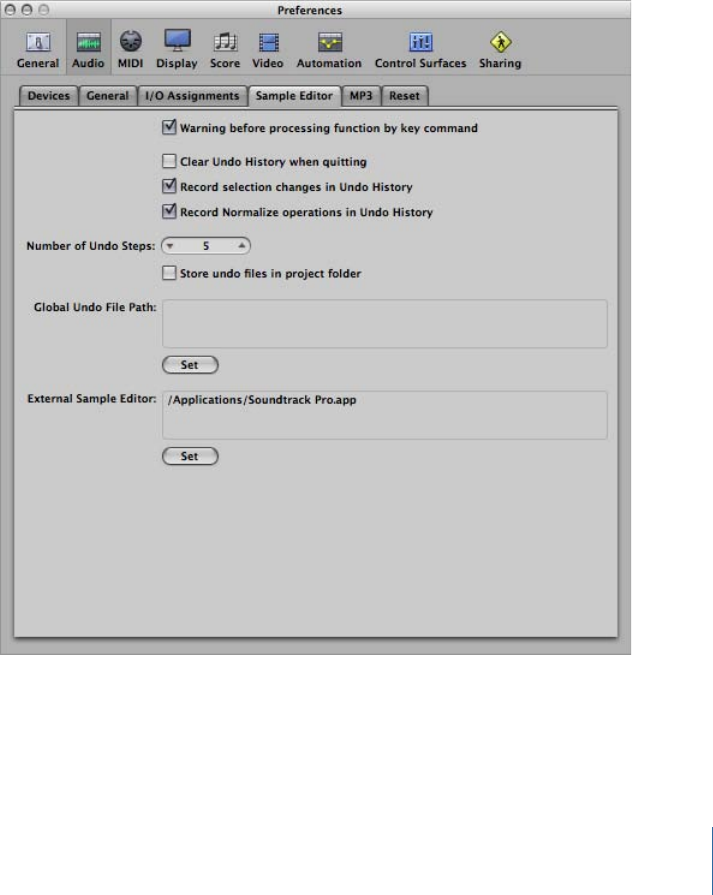 2 Click the Sample Editor tab, click the Set button below the External Sample Editor section,