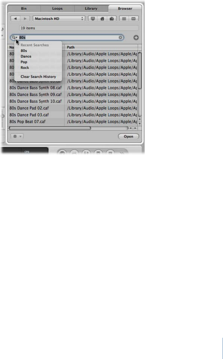 Searches from the pop-up menu.