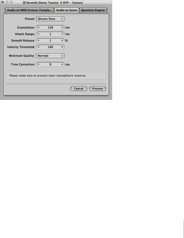 3 Choose Factory > “Audio to Score” (or use the corresponding key command, default