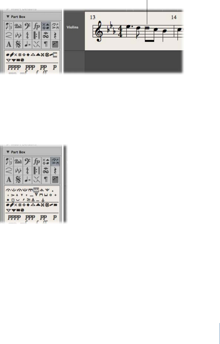 Symbols Attached to Notes in the Part Box
