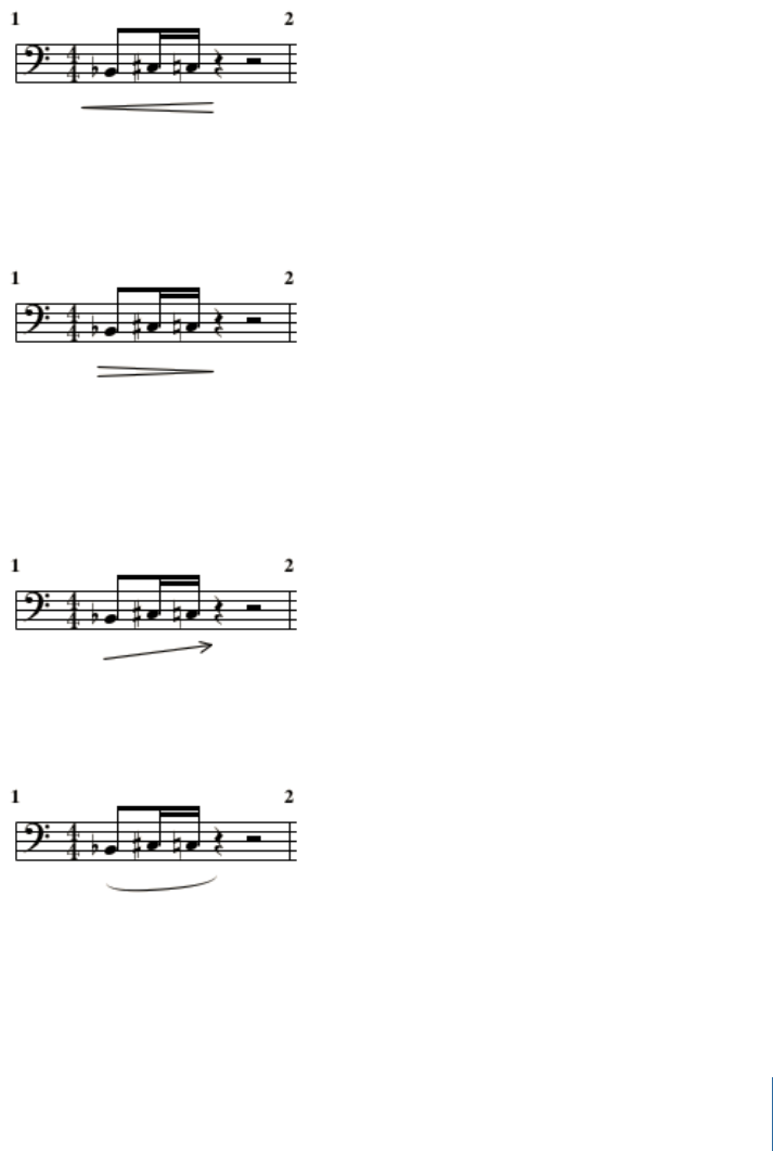 • Slurs: Slurs have five editing points, used to change their shape. The last two slur
