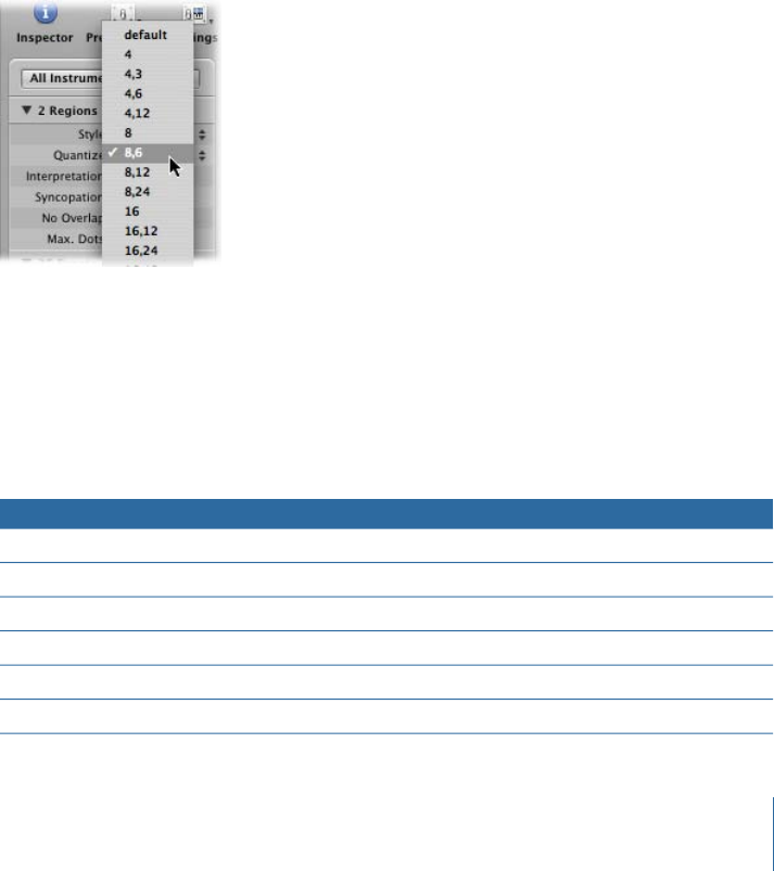 You choose the Quantize value from a pop-up menu, which contains all available display