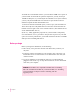 If you see the Apple HD SC Setup window Follow these steps to update your disk drivers: 1 Click Drive until the “volume name” is the name of a hard disk attached to your computer. If a disk name doesn’t appear when you click Drive: See “Problems During Installation” in Chapter 3. 2 Click Update and follow the instructions on the screen. Repeat steps 1–2 to update the drivers on any additional hard disks you have. 3 When you finish updating the drivers on all your hard disks, click Quit.