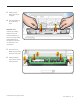 3 Holding tray by latches, lift it out of computer. 4 Place tray DIMM side up on soft, clean cloth. Important: When removing or installing DIMM, be careful of nearby heatsink fins, as they can be sharp. Always handle DIMM only by the edges. Do not touch its connectors or any components. 5 Open ejectors on DIMM slot by pushing them out to the sides. 6 Holding DIMM by edges, remove it from processor board. © 2009 Apple Inc. All rights reserved. 073-1246 Rev.