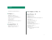 Contents Communications regulation information v m Setting Up 1 Plugging in the computer 2 Connecting the mouse and keyboard 3 Turning on your computer for the first time 4 Problems starting up? 5 Safety instructions 6 Health-related information about computer use 7 What’s next? 11 m Learning the Basics 12 Taking the Macintosh Basics tour 12 Turning the computer on and off 16 m Your Computer at a Glance 18 m Special Features 20 Adjusting the sound 20 Adjusting the screen 22 Disabling the buttons on the f
