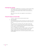 3 Read about the shortcuts available for the category you selected. Click the right arrow in the lower-right corner of the window to display the next window (if there is one). 4 34 Chapter 2 When you finish reading about the shortcuts for your category, click the Topics button in the lower-left corner to return to the main Macintosh Shortcuts window. Or click the close box in the upper-left corner to close the window.