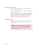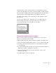 Solutions to other problems The computer I want to connect to doesn’t appear in the Chooser. m Make sure the computer you’re trying to connect to is turned on. m Make sure file sharing is active on the computer you’re trying to connect to. (That computer’s Sharing Setup control panel should say that file sharing is on.) I connected to another computer, but the shared disk I want to use is not available. m You may already be connected to the shared disk. Check for its icon on your desktop.