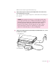 5 Make sure the monitor cable is attached to the monitor. Then attach the other end of the monitor cable to the PowerBook’s video adapter. Video port Video adapter Monitor cable 6 Attach the video adapter to the video port (marked with the icon ™) on the computer’s back panel. 7 Turn on the external monitor. 8 Press the Power (on/off) key to turn on your computer. (You can press any key if your PowerBook is in sleep.) The external monitor is automatically activated.