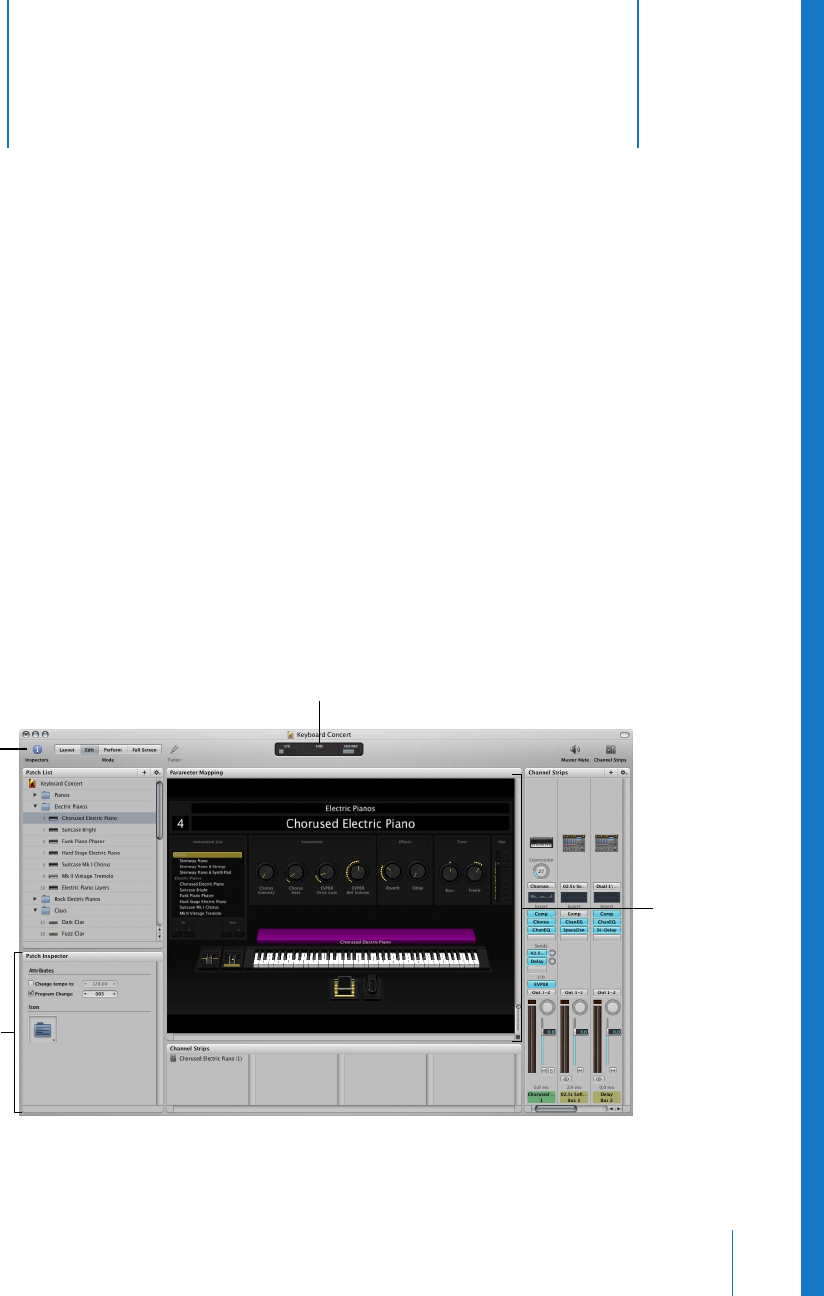 The MainStage window is organized to make working with your patches and your