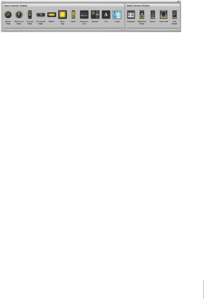 controls and shelf controls. In Layout mode, each type has its own palette (the Panel