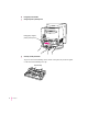 3 Swing the wire handle back into its storage position. Swing the handle up, into its storage position. 4 Slip the three tabs at the top of the back panel into the grooves in the computer case. Slip the three tabs on the back panel into the grooves in the computer case.