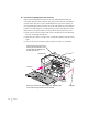 Replacing the chassis and expansion card cover 23 Make sure all cards and cables are firmly connected. 24 Disengage the support arm and swing the chassis down, without pinching any cables. Make sure the cables you connected are away from the heat sink and center support post. Support arm Disengage the support arm from the hole on the floor of the bottom chassis by lifting up on the support arm. Gently swing the top part of the chassis down until it rests securely on the bottom chassis.