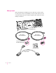 16 Plug one of the two identical SCSI audio cables (with the plug shown below) into the connector on the logic board. IMPORTANT Use only the cables that came with this PC Compatibility Card. Do not use cables from other models of the card. Your PC Compatibility Card came with three audio cables. They may have different colors of tubing near the ends to help you tell them apart. You’ll only be using two of these cables (the third one is for a different kind of CDROM drive).