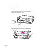 16 Insert the card. The end of the card should engage the card guide at the front of the computer. Press down on the card. When the card is fully inserted, you won’t be able to see the gold-colored connector any more. m Don’t rock the card from side to side; press it straight into the slot. Rocking the card can damage the PCI slot. m Don’t force the card. If you meet a lot of resistance, pull the card out and try again. m To see if the card is connected, pull it gently. If it resists, it is connected.