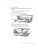 Replacing the computer’s cover 16 Tuck the audio cables in on top of the PC Compatibility Card, so that they’re out of the way of the retainer or auxiliary fan. 17 Replace the retainer or fan. Make sure no cables are squeezed between the retainer or fan and the top of the card. Snap the auxiliary fan back into place. Be sure not to pinch the audio cables that are connected to the PC Compatibility Card. Fold the peripheral flex cable upward as you snap the auxiliary fan back into place.