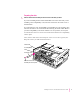 5 Installing the Card in a Power Macintosh 8600 or 9600 The illustrations in this chapter show the 8600 model. If you have a 9600 model, some of the illustrations may look slightly different from your computer. After you install the PC Serial and Parallel Card hardware, go to Chapter 6, “Updating Your PC Compatibility Card Software.” Then turn to Chapter 7 to learn more about connecting PC-compatible equipment to your PC Serial and Parallel Card.
