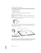 2 Turn over the PowerBook and locate the battery latch. Use a coin to turn the latch one quarter turn clockwise to unlock the battery, and gently remove it. Latch To replace the battery: m Place the right side of the battery into the battery compartment. Gently press the left side of the battery down until the battery latch locks. Note: Dispose of batteries according to your local environmental laws and guidelines. For more information, see “Disposal and Recycling Information” on page 100.