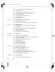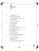 LL3264.book Page 106 Wednesday, August 17, 2005 6:33 PM headphones 30 to Internet 11 modem 44 monitor or TV 97 a printer 28 TV 47 two computers 36, 37 USB printers 34 VCR 47 videocameras 36 video device 47 wirelessly 39 conserving battery power 96 controls brightness 13 keyboard 13 volume 13 cord, AC 6 D Dashboard 13, 24 Dashboard & Exposé preferences 25 Desktop & Screen Saver preferences 25 DHCP.