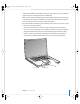 LL3264.book Page 39 Wednesday, August 17, 2005 6:33 PM Inserting and Ejecting a PC Card When inserting a PC Card, make sure the label is facing up and the card is level. You’ll feel some resistance as you slide in the card. When the card is firmly seated in the slot, it clicks into place and an icon appears on the desktop. You can eject a PC Card when your computer is on or off, but not when it is in sleep. To eject a PC Card: 1 If the computer is turned on, drag the card’s icon to the Trash.