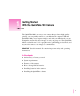 1 Getting Started With the QuickTake 100 Camera The QuickTake 100 is an easy-to-use camera that produces high-quality pictures you can quickly transfer to your Macintosh computer. With the QuickTake 100 you can capture images, and with your Macintosh you can manipulate and modify those images to suit your purposes. The QuickTake 100 is a valuable new tool for graphic artists, publishing professionals, and anyone who wants to use images to communicate. IMPORTANT Save this manual.