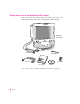 Getting ready to set up your AppleVision 850AV Display Before you set up your monitor, make sure you have easy access to the following items that came with your AppleVision 850AV Display: AppleVision 850AV Display O ¤ ® Z Monitor cable Sound cable Ambient light tool Power cord VGA adapter User’s manual Software Note: Your power cord may look different from the one pictured.