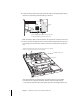 12 Re-install the card in the bottom PCI slot with the standoff in place. Remove the paper covering from the standoff’s bottom and press the standoff against the insulation sheet. Remove the paper covering on the bottom of the standoff’s base to reveal the sticky tape. Carefully reinstall the card in the bottom PCI slot and press down firmly on the standoff to secure the card assembly to the plastic sheet. 13 Close the PCI card cover and tighten its thumbscrew.