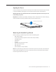 Removing the Xserve from a Rack 1. Alert users that the server will be unavailable for a period of time. 2. Shut down the Xserve (see the Xserve User’s Guide for help) and then wait to let the Xserve internal components cool. Warning: Always shut down the Xserve before opening it to avoid damaging its internal components or the components you want to install or remove. Don’t open the Xserve or try to install or remove items inside while it is turned on.