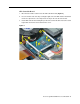 8. Reinstall the two ATA controller clips. Note: When replacing the ATA controller board clips, orient them so that the long end of each clip points away from the middle of the server. Place the inside edge of the clip into the small notch and then snap down the outer edge of the clip. (Figure 13) Figure 13 9. Replace the heatsink duct on the heatsink. 10. Reconnect the dual- and single-slot risers to the logic board. 11. Reinstall any DIMMs in the logic board memory slots.